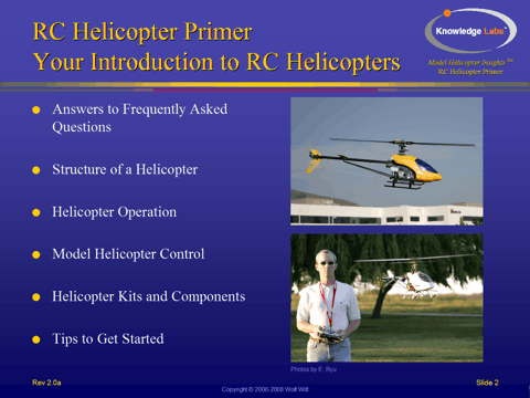 Welcome to the RC Helicopter Primer. I hope that this presentation will help you started in the exciting and fun hobby of radio control helicopters.